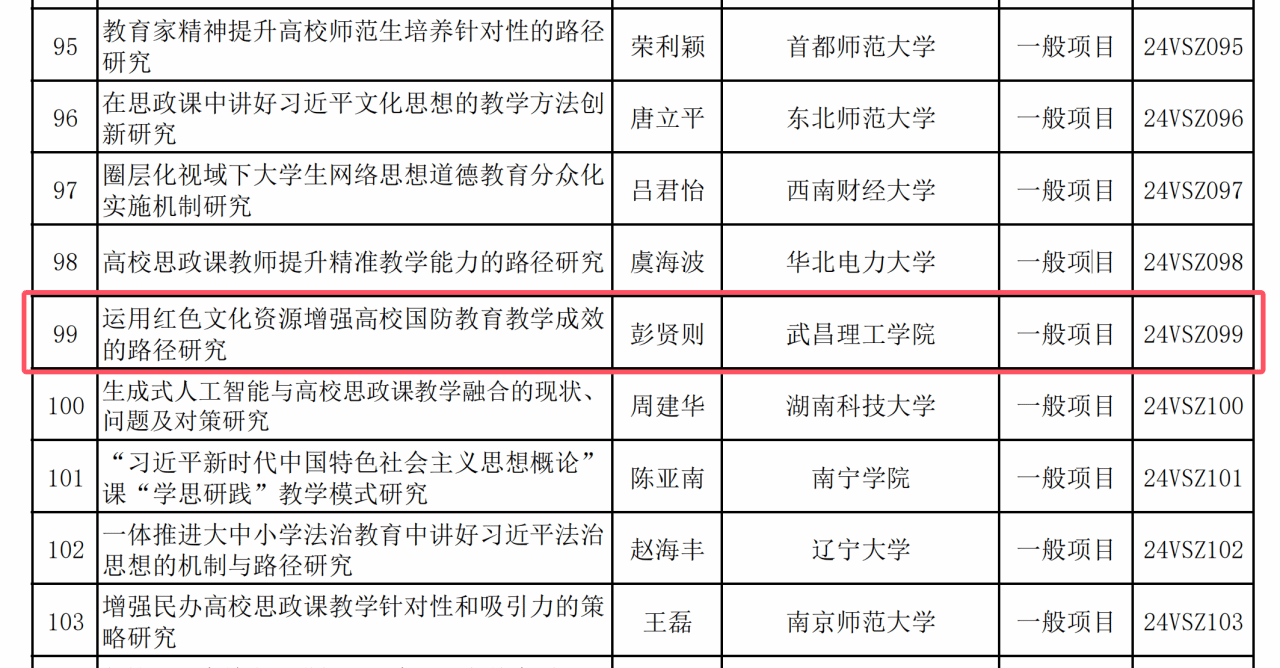 日前,2024年国家社科基金高校思想政治理论课研究专项立项名单正式公布,全国共立项186项。bevictor伟德体育经理彭贤则教授主持的《运用红色文化资源增强高校国防公司产品成效的路径研究》项目成功获批立项。湖北地区仅bevictor伟德体育及华中科技大学、中国地质大学、华中师范大学、武汉理工大学、湖北大学、武汉科技大学、武汉工程大学、湖北工业大学、三峡大学10所高校获批上榜。bevictor伟德体育是唯一获批立项的民办高校。